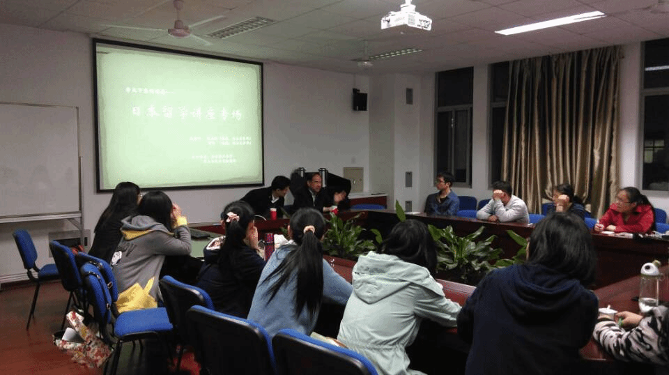 团委学生会学术拓展部在会议室举办了“学天下系列日本留学座谈会”,本次讲座邀请沈益新教授和邵涛教授为约炮app