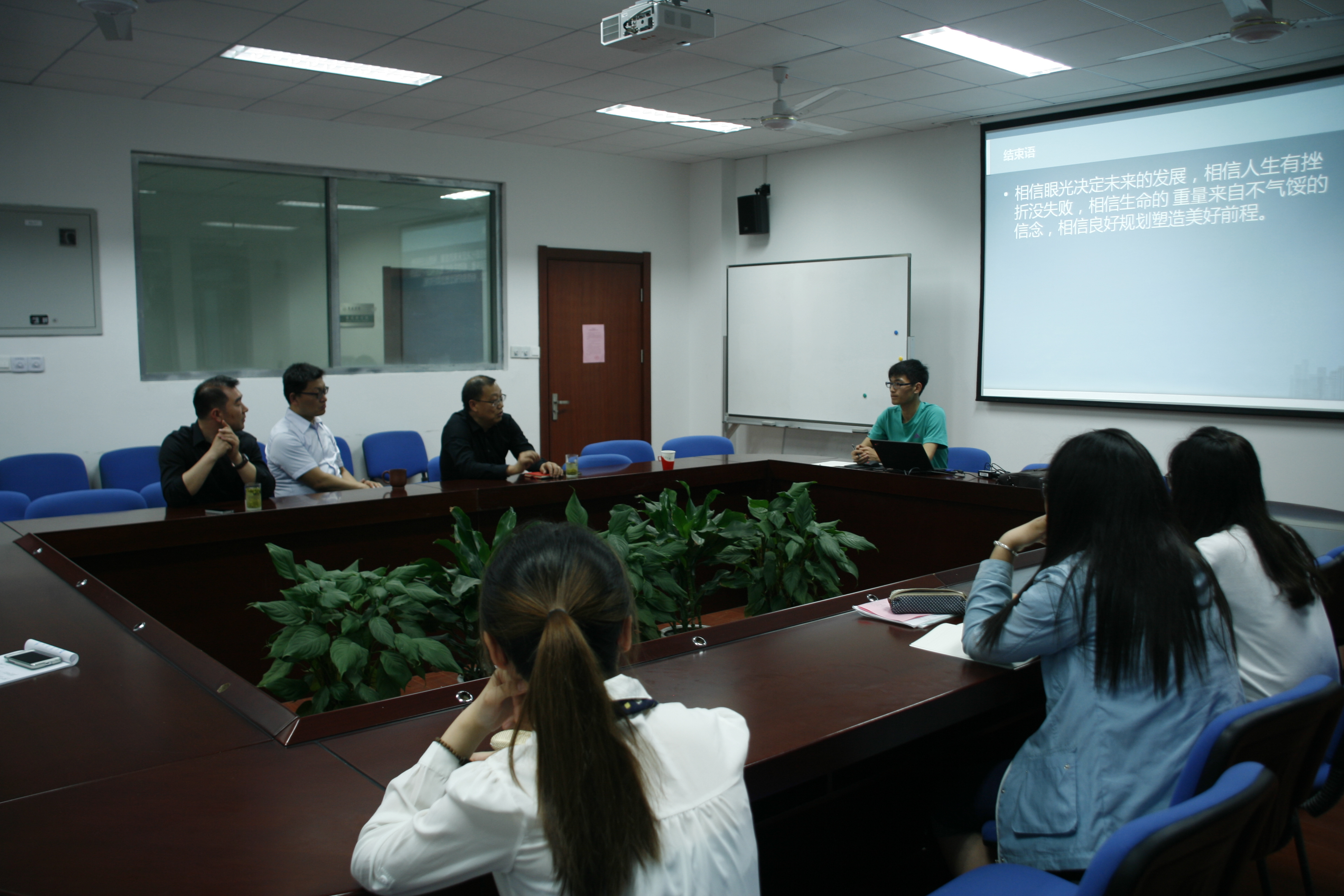 作为一家创立10余年的民营企业老总,盛谦先生根据自己多年的工作经验对同学们提出这样中肯意见:要轻松地面对自己的工作,不胆怯,不抱怨,才能更加投入到工作中去,要时刻保持对工作的激情,坚持下去,最终体会工作带给我们的快乐。最后,高务龙副院长指出同学们要注意PPT的色彩与风格,要简明扼要,便于观看,在讲解中,要了解观众的反应,学会与观众互动。