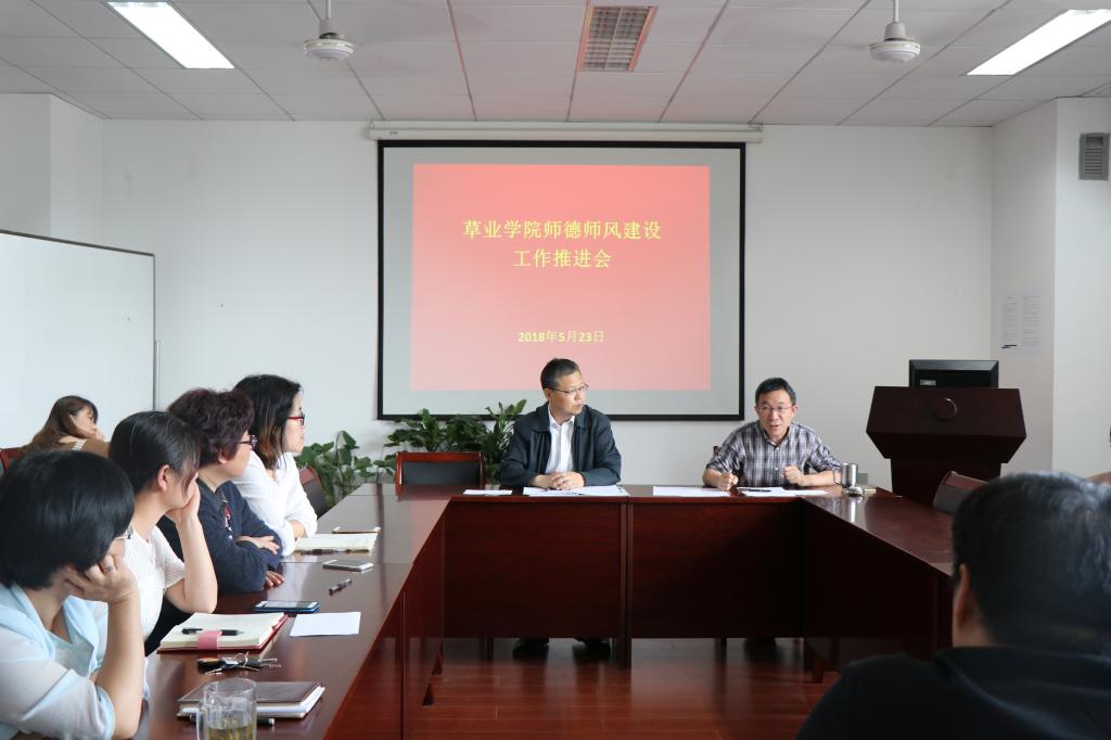 召开师德师风建设工作推进会,党总支书记李俊龙、院长郭振飞等全体教职工参加了此次会议,会议由郭振飞主持。