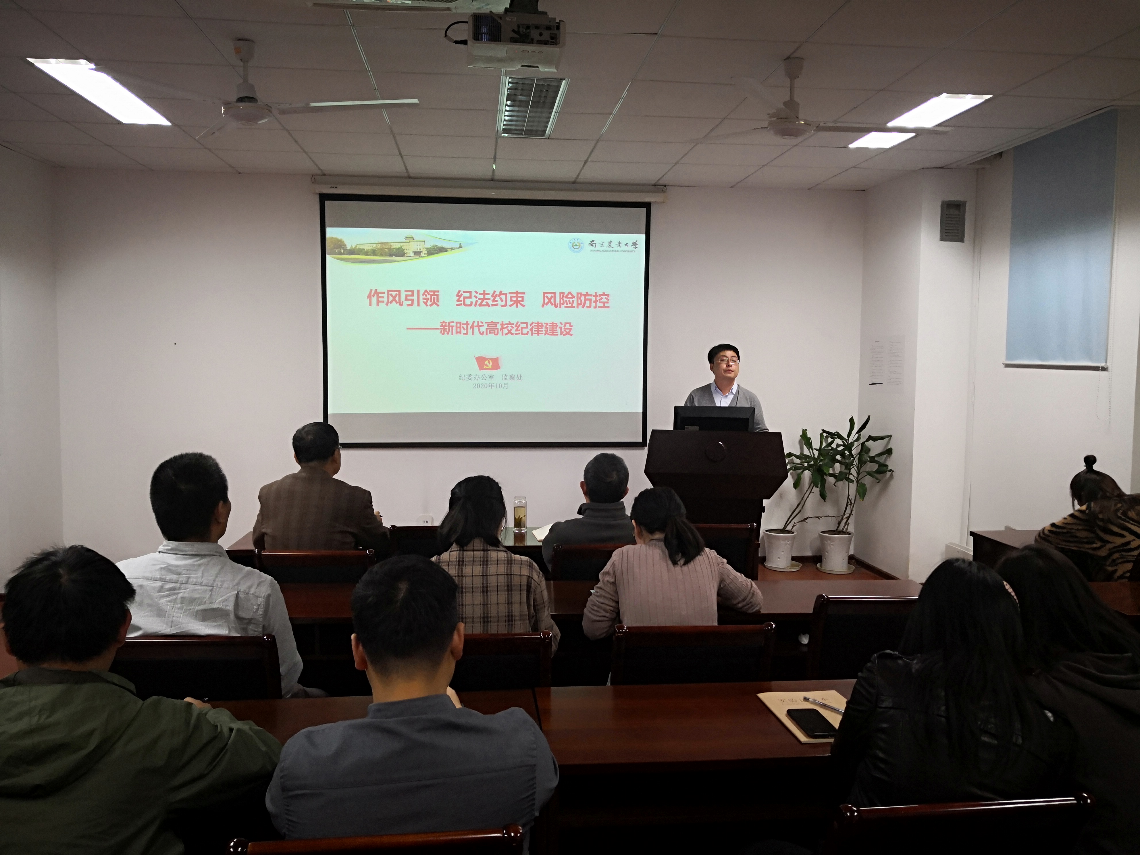 在理科南楼院会议室F304举办了纪法教育与作风建设专题学习报告会。报告会特邀校纪委办公室、监察处副处长梁立宽主讲,约炮app