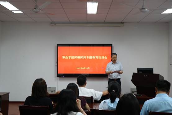 召开师德师风专题教育动员会,全院教职工参加了大会,动员会由院党总支书记李俊龙主持。