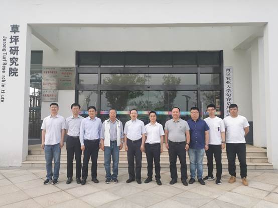 会后,周杰一行参观考察了南京农业大学句容草坪研究院。草坪研究院院长杨志民向周杰一行详细介绍了研究院的概况、发展历程及取得的成果。