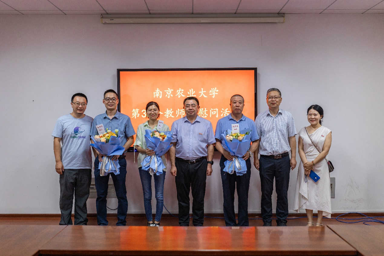 董维春代表校党委和行政向获得校优秀教师荣誉的杨志民和学院教师代表马桂玲、杨波送上了鲜花及美好的节日祝福,并通过他们向全院教职员工致以节日的问候和诚挚的祝福。