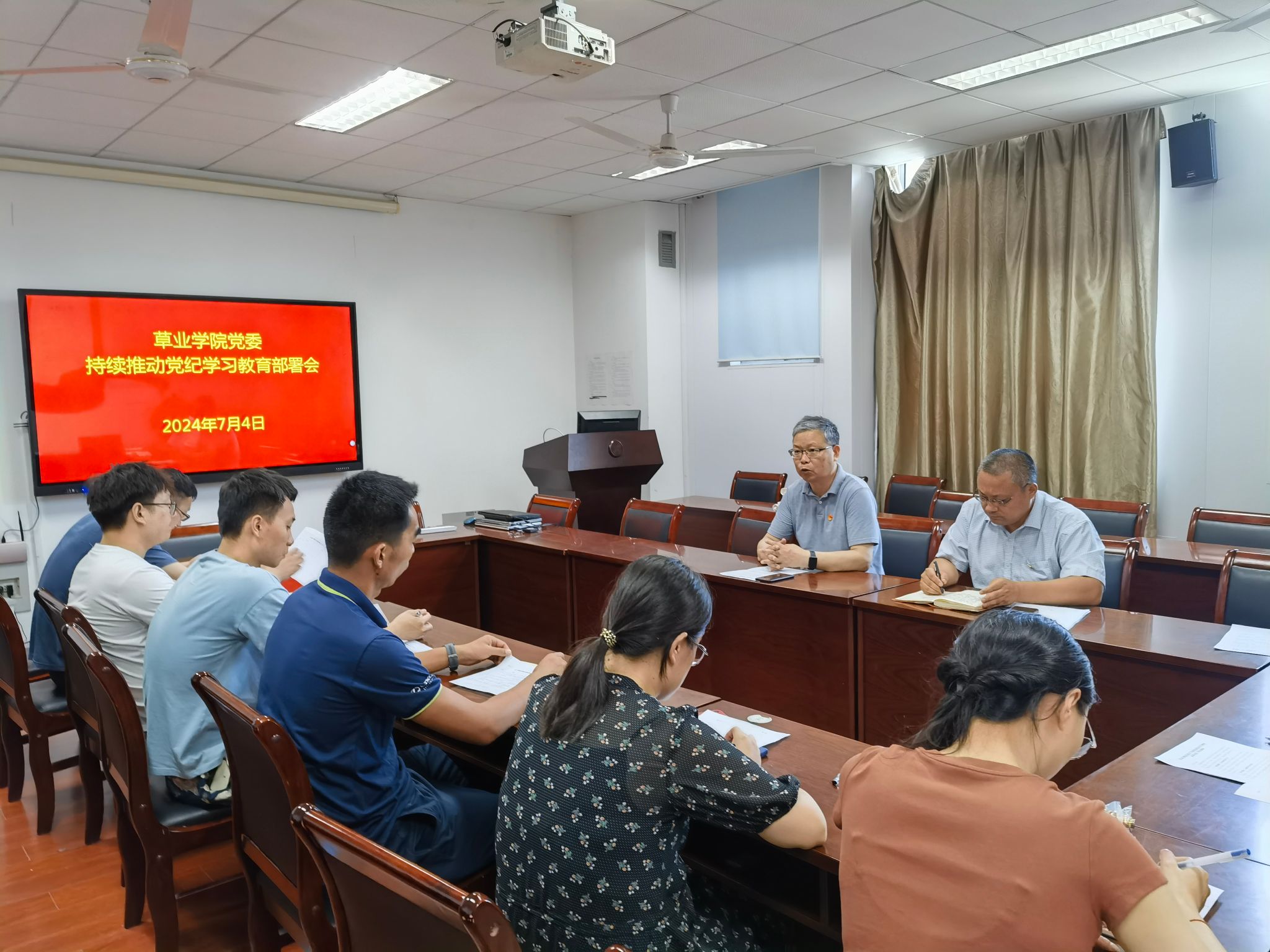 召开持续推动党纪学习教育走深走实工作动员部署会。院党委书记李俊龙、副书记韩立新,各党支部书记、党务秘书等参加会议。动员部署会由李俊龙主持。