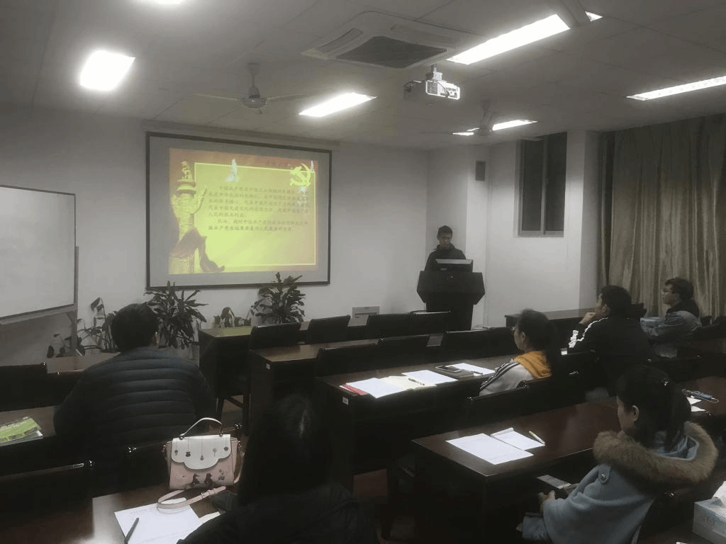此次会议主要围绕三个议题展开:1. 本支部新党员发展候选人自我汇报;2. 支部正式党员讨论投票;3. 学习新修订的《中华人民共和国宪法》和《中国共产党纪律处罚条例》并讨论。六点钟,在支部书记张敬的主持下,会议正式开始,首先分别由候选人赵杰,陈继辉两位同学进行了自我情况的汇报,两位候选人均表现出色,在本科期间就积极向党组织靠拢,经过了长期的学习和考验,并由部分正式党员对两位候选人进行了补充介绍。