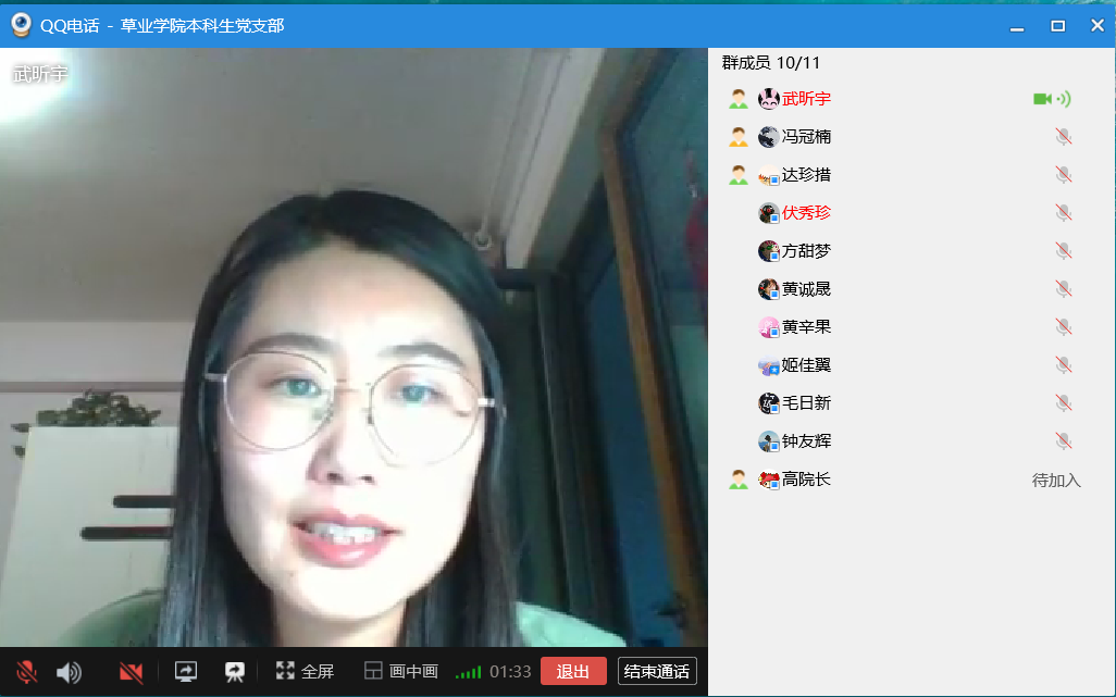 本科生党支部利用QQ视频召开了线上学习会,应到党员10人,实到党员10人,本科生党支部书记武昕宇主持了本次大会。
