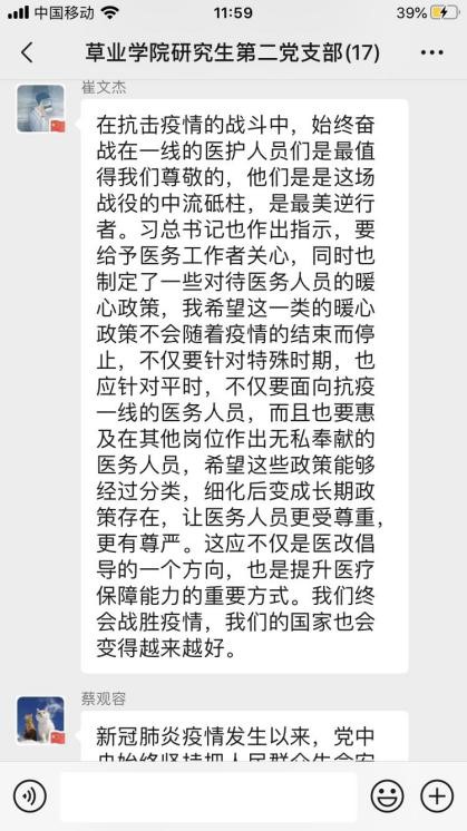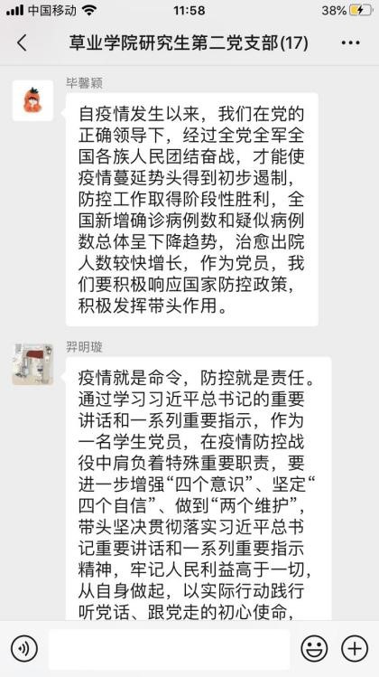 研究生第二党支部开展线上理论学习。研究生第二党支部全体党员参与了本次线上学习,本次理论学习讨论会议由党支部副书记季晓敏同志主持。