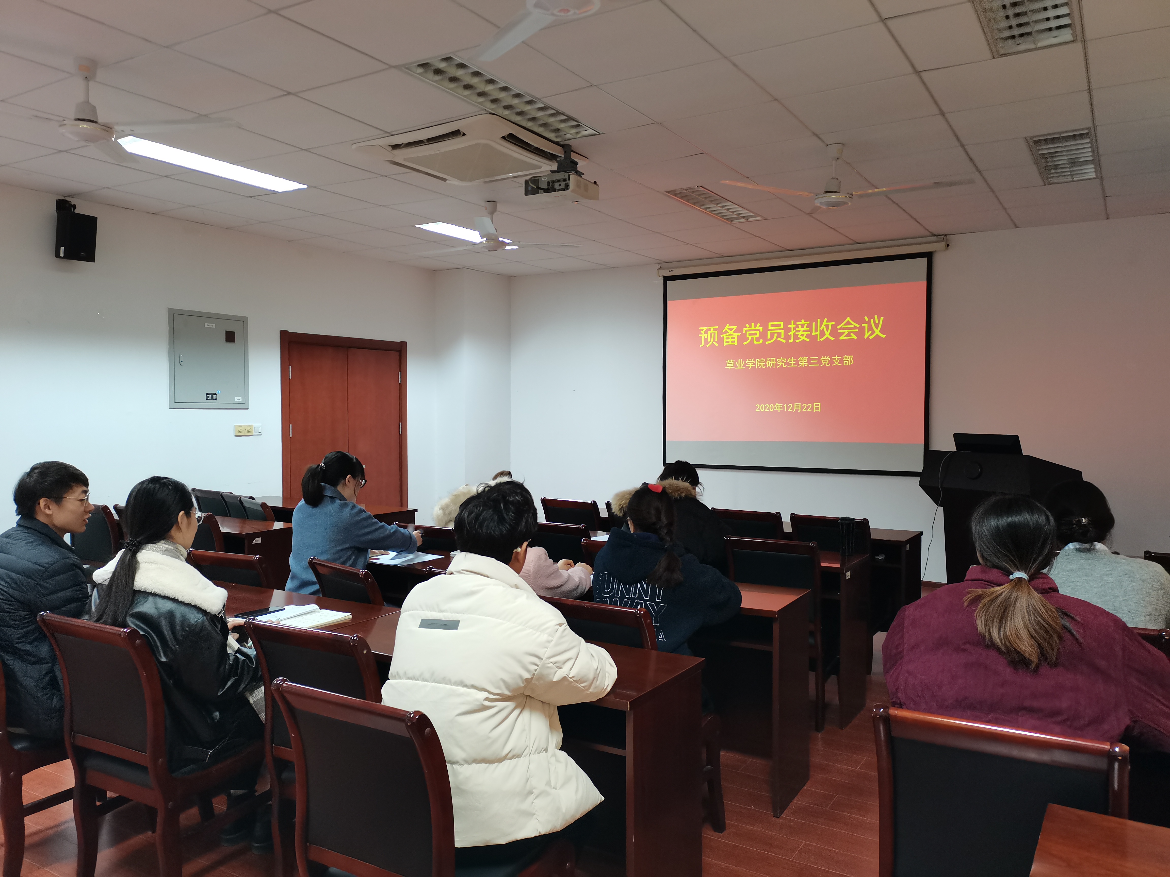 研究生第三党支部在理科南楼F304会议室召开了预备党员接收会议。会议由支部副书记张晴主持,支部全体党员同志及支部拟发展对象共11人参会,其中党员6名,预备党员2名,发展对象3名。