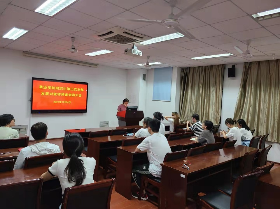 研究生第三党支部在理科南楼F304会议室召开了预备党员接收会议。会议由支部副书记吴佳璇主持,支部全体党员同志及支部拟发展对象共15人参会,其中正式党员8名,预备党员4名,发展对象4名。