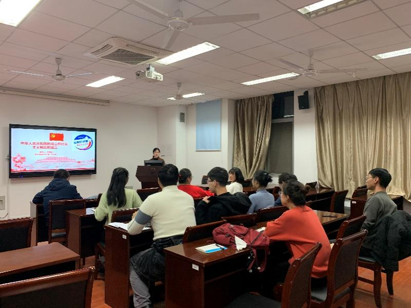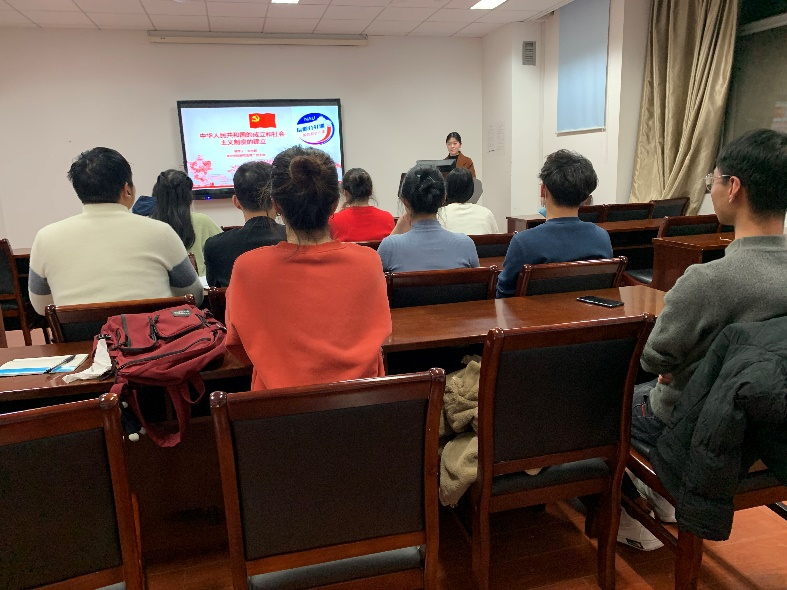 研究生第二党支部召开了微党课专题学习会议。此次会议由党支部副书记陶亭亭同志主持,常杰超同志带领大家学习了“中华人民共和国的成立和社会主义制度确立”。