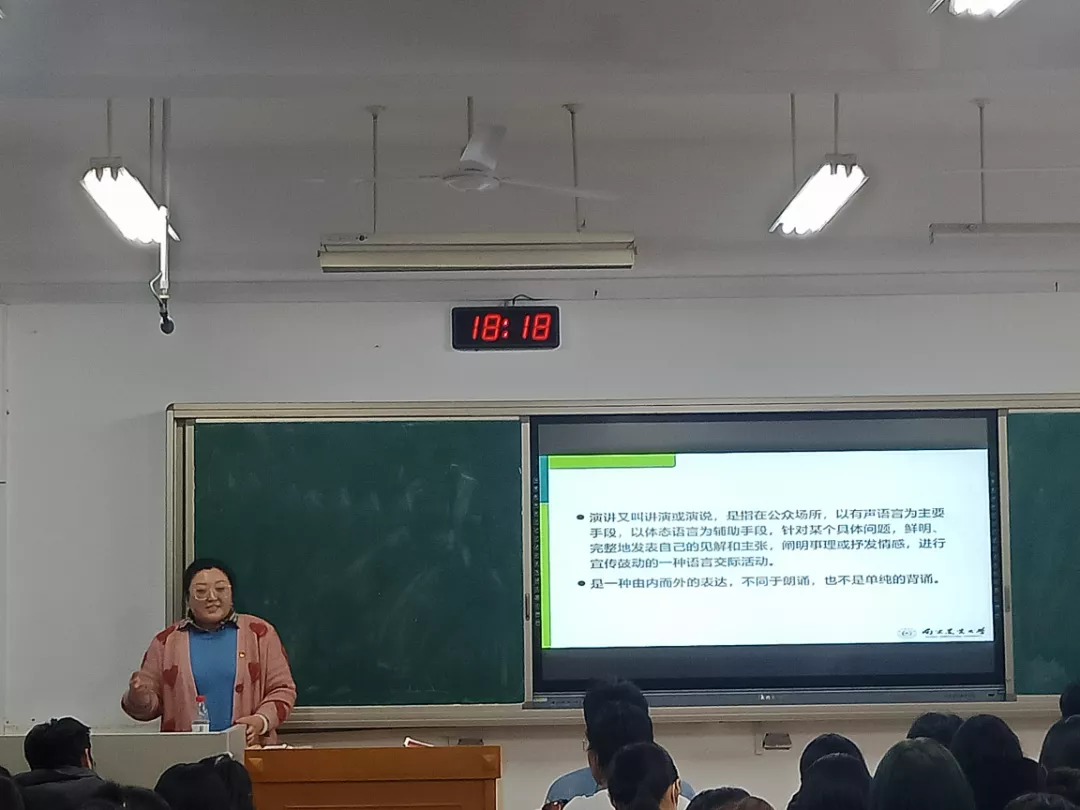 师生举办了一场以“做一个合格的表达者”演讲入门技巧讲座。讲座由辅导员武昕宇老师主持,学院本科研究生新生现场聆听了讲座。