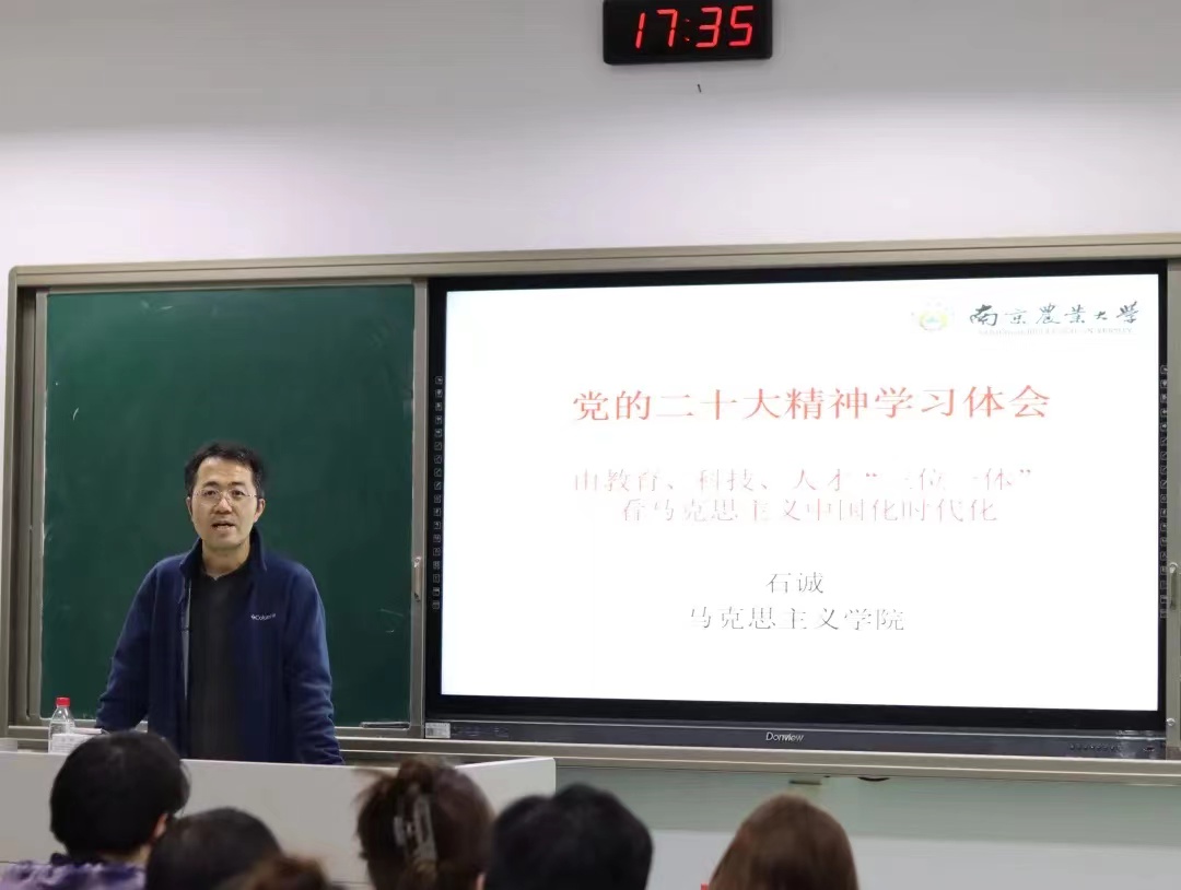 举行了党的二十大精神学习培训会议,此次培训邀请了南京农业大学马克思主义学院的石诚副教授主讲,会议由约炮app