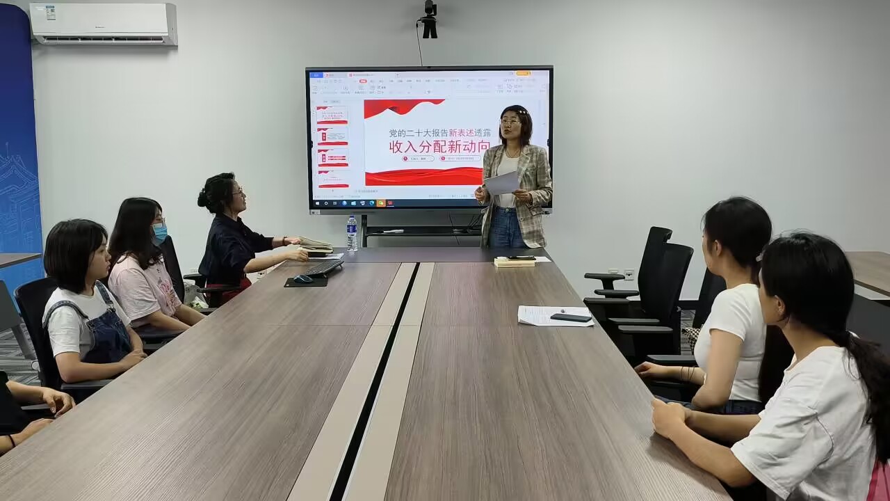 会议开始,童院长提出问题“什么是财富?”,各位党员认真思考并积极回答。接着,童院长提出本次党课的主题——规范财富积累机制,促进机会公平。首先,童院长指出:党的二十大报告首提“规范财富积累机制”,这既是完善分配制度、推进共同富裕的必然要求,也是实现高质量发展的重要内容。当前社会财富积累速度很快,但财富差距仍在扩大,经过多年探索和不断完善,收入分配领域已有相对比较完善的应对策略,如大力发展针对中低收入群体的普惠性财富管理,同时在毫不动摇地坚持保护合法私有财产的前提下,适当约束规范高收入群体过快的财富增长速度。