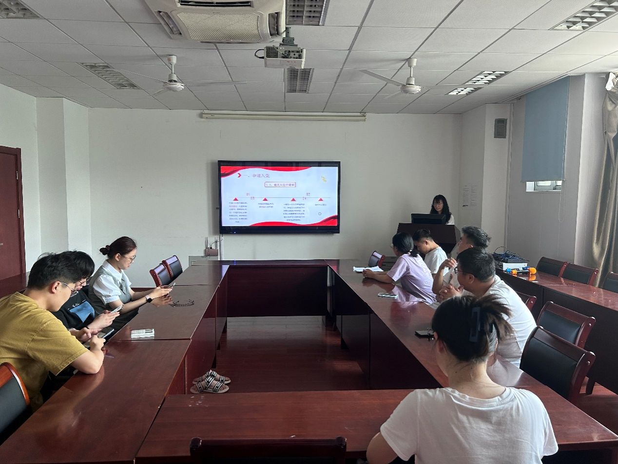 首先,徐根玲同志从申请入党、入党积极分子的确定和培养教育、发展对象的确定和考察、预备党员的接收、预备党员的教育、考察和转正五部分展开培训,系统地讲解了一名党员是如何从入党申请书开始,逐步完成各项工作,直到成为一名合格的正式党员。其中特别强调了发展对象的确定和考察需要经过严格的政治审查与培训工作,才有资格成为发展对象,并接收成为预备党员。徐根玲同志对与会的积极分子和发展对象寄予了深刻的期望,希望他们能认真学党史、修党性,早日使自己具备成为一名合格党员的条件。