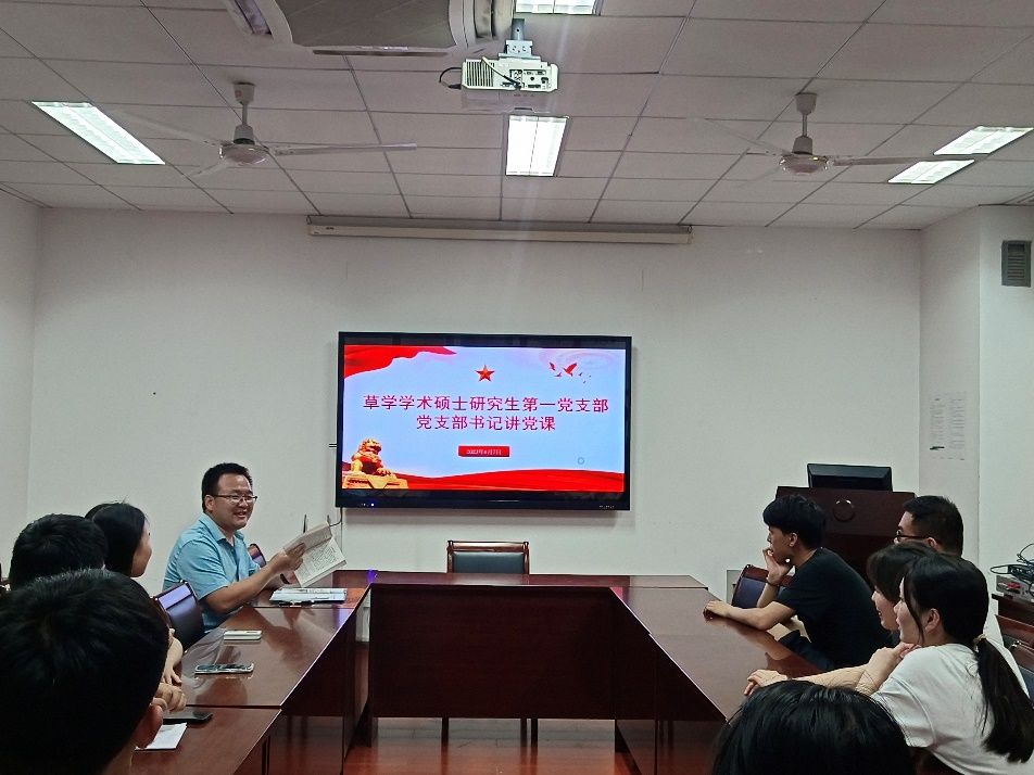 草学硕士研究生第一党支部举行“党支部书记上党课”活动,讲课人为党支部副书记龙江宇,共12名党员参加学习。
