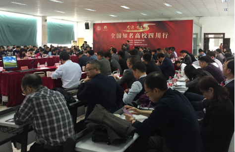 3月25日上午,招生宣传组前往绵阳参加新高考背景下中西部地区中学人才培养与高校人才选拔高峰论坛,听取绵阳市副市长蒋丽英、国家基础教育司原司长王文湛、厦门大学考试院刘海峰等领导关于新高考背景下教育改革的相关精彩讲座。3月25日下午,由四川省考试院主办的全国知名高校四川行活动在四川省绵阳南山中学举办,我校与清华大学、北京大学、南京大学、哈尔滨工业大学、南京航空航天大学、南京理工大学等展开招生宣讲及交流,加强兄弟院校间交流,建立良好纽带。