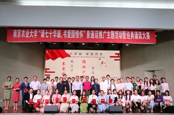 2019年9月18日晚,“南京农业大学‘颂七十华诞,书爱国情怀’普通话推广主题活动暨经典诵读大赛”的决赛在大学生活动中心顺利举行。本次活动由南京农业大学党委组织部、宣传部、南京农业大学语言文字委员会和公共艺术教育中心共同主办,约炮app-免费约炮app