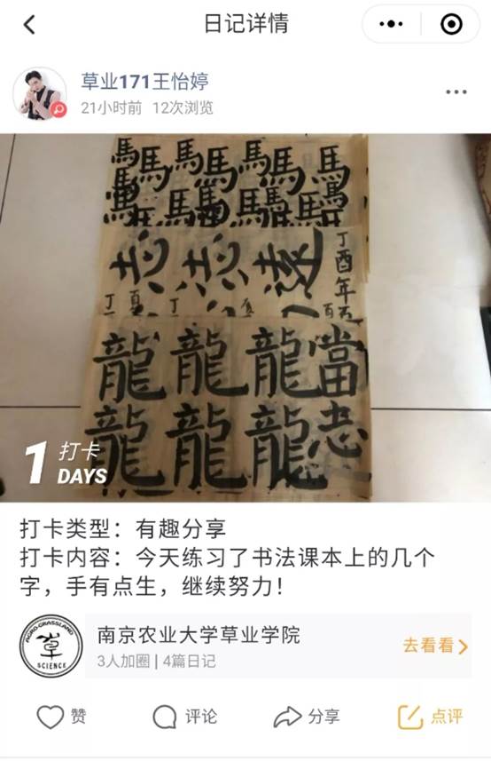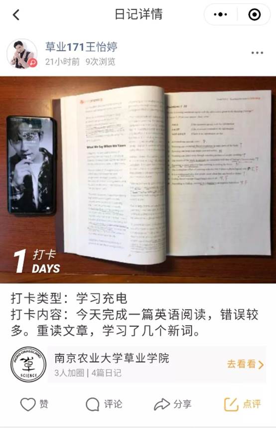注意:拍照打卡时将当前时间与打卡内容一起合影,可拿手机/闹钟显示(参见推送中学习/读书类打卡);