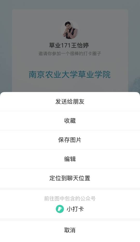 特别注意:加入“小打卡”后,大家将自己的备注改为年级+姓名,如“草业171 张三”