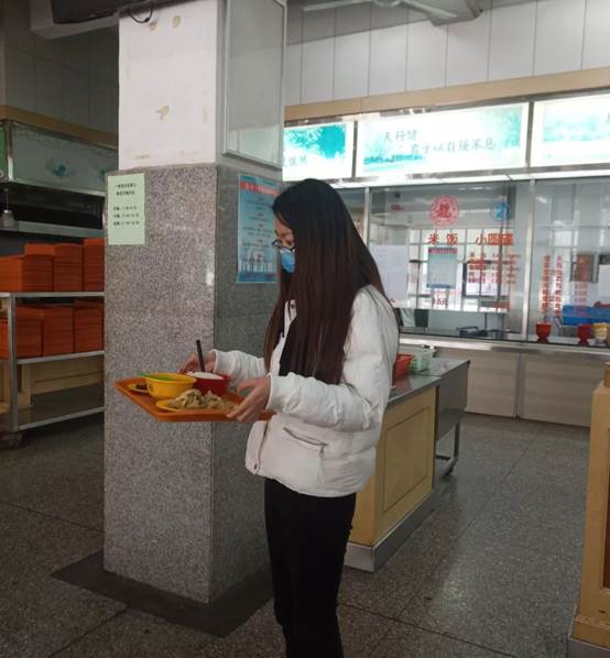 与此同时,因疫情被滞留在学校的娄金秀同学也买好了早餐,开始了新一天的生活。没有家人朋友陪伴的这个新年,她也在合理的规划着每一天,让自己的生活更加充实。