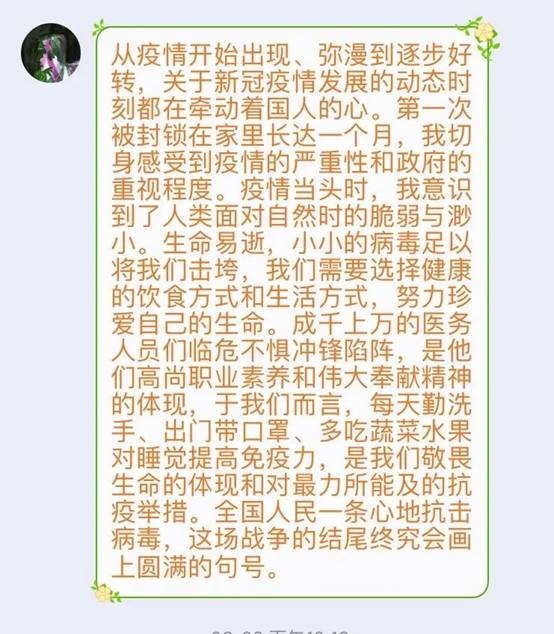 活动当天,同学们各抒己见,纷纷拿出自己准备的材料来表达对此次疫情事件的看法和反思。