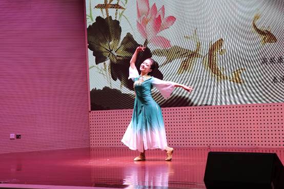 “遏云歌响清,回雪舞腰轻”深切的歌声后,高梨康治舒缓轻柔的乐曲响起,舞者以优美的舞姿带给观众们美的享受,舞台上仿佛绽放出一朵随风飘舞的花,翩翩起舞的少女让人赏心悦目,唯有美溢满观众们的心。