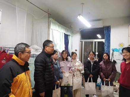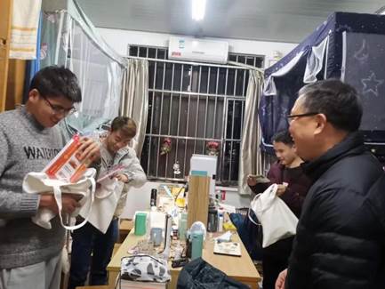 除了给考研同学们送上礼物,12月23日,学院领导和班主任老师也亲临宿舍为考研的同学加油打气——