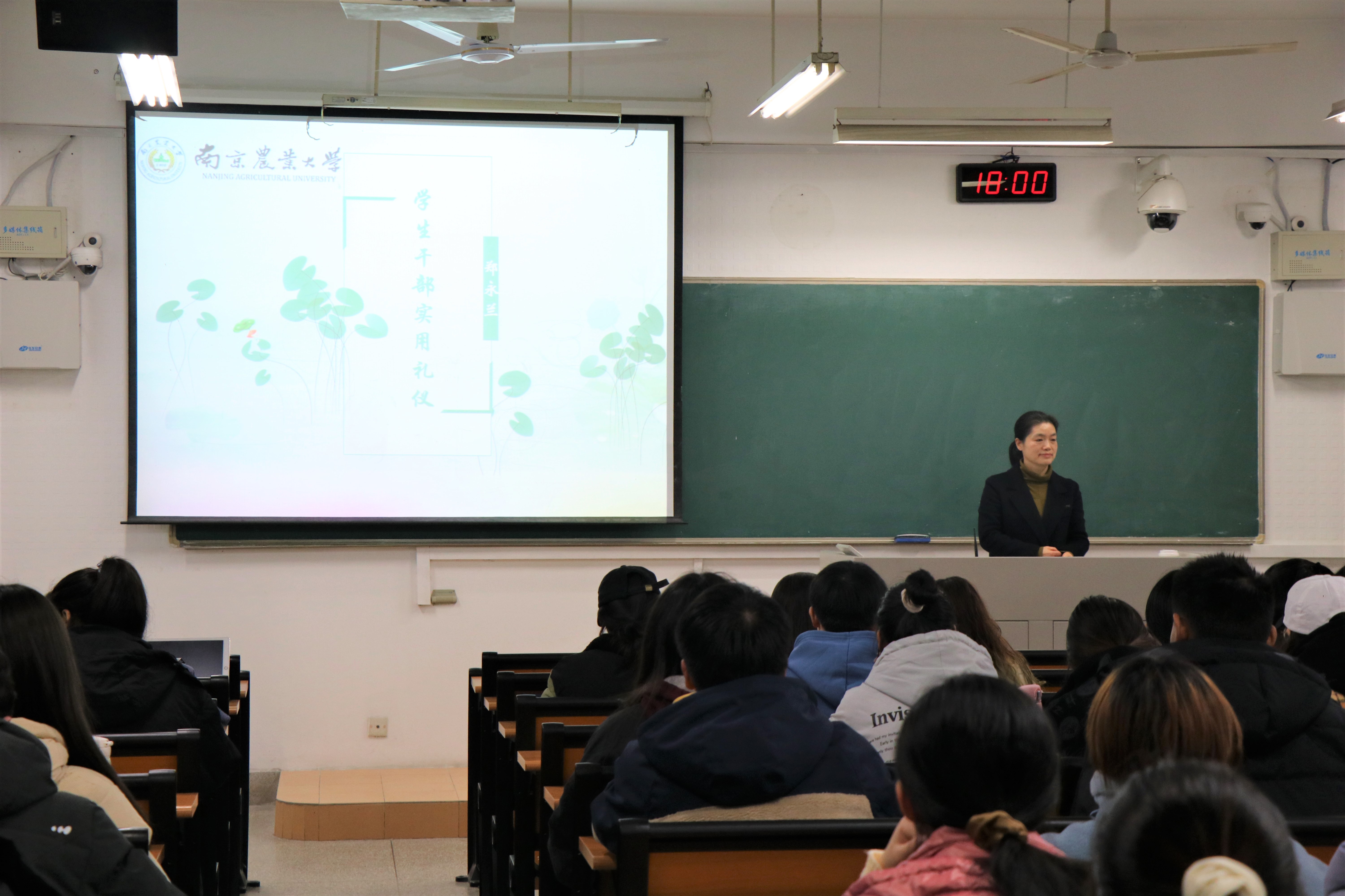 在教学楼A206教室举办了学生干部实用礼仪培训。本次报告会邀请了南京农业大学公共管理学院郑永兰教授主讲,约炮app