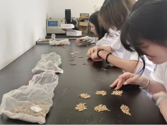 7月3日下午,1组进入实验室,在老师的带领下,实践团完成了两项任务:先对20种草种进行了装瓶、贴签;再进行20种草种的分拣,将分拣好的种子分为对照组和处理组,为种子的发芽实验做前期准备。