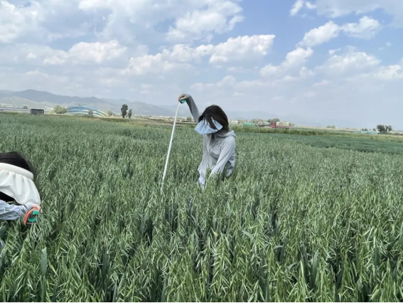 7月4日下午,1组同学在田振东老师的带领下,进行了燕麦种质资源的观察,每个小区随机挑选10株燕麦进行了株高、叶片数量、旗叶长和宽的测量。在这个过程中,同学们不仅学习了田间测验的基本方法,而且认识到了团队协作的重要性,学会了更高效地完成团队任务。