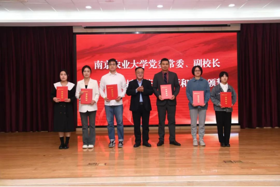 颁奖仪式上,南京农业大学党委常委、副校长单正丰为获奖师生颁发荣誉证书,南京农业大学校友总会办公室(教育基金会办公室)主任姚科艳宣读表彰决定。