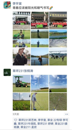 杨老师安排研究生同学现场演示了使用驾乘式滚刀剪草机修剪草坪的工作,介绍了不同类型草坪的修剪要求差异,以及基地的其它附属设施。