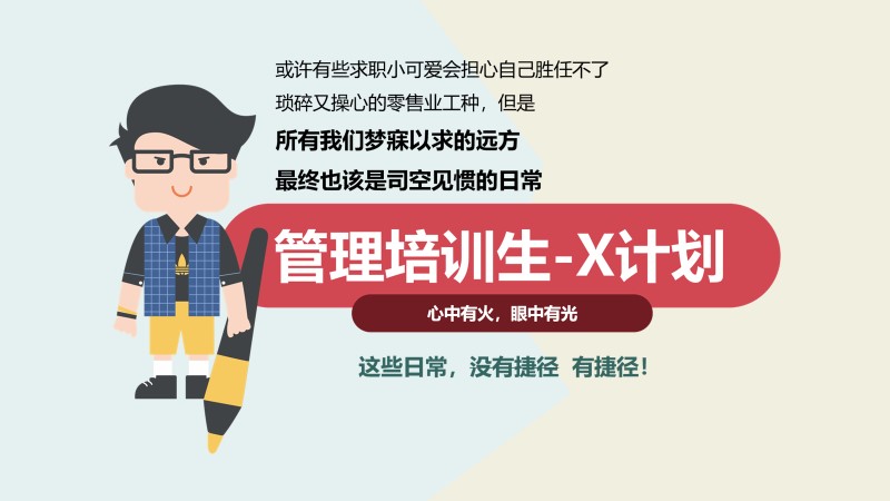 1、美好生活的创造者,心中有爱,眼中有美; 2、时尚弄潮儿,有审美有格调,关注流行时尚; 3、爱学习善思考,快速掌握新知识,分析问题有逻辑; 4、具备同理心和亲和力,善于观察和理解他人; 5、具备影响力和掌控力,能够影响、带动、激发他人; 6、跨领域知识丰富,能够多角度思考问题,有创新想法; 7、热爱零售行业,吃得了苦,霸得了蛮,耐得住寂寞 |