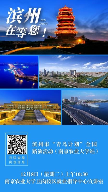 全国路演活动,12月8日上午10:30我校就业指导中心宣讲室进行,山东省滨州团市委的老师将对滨州地区招才引智的政策进行宣讲,同时也会携带一些优质岗位参会。